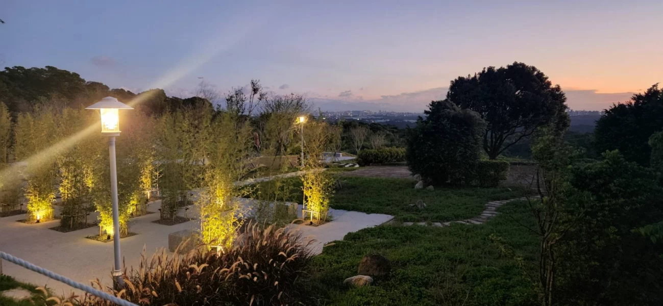 觀龍陵・花園仙境,位於緩坡之上,經專業整地後,園區形成少見的平面式基地,視野開闊、步道穩定。